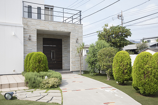 玄関アプローチも門と同様、住まいの顔といわれ家の印象を左右するポイントの1つです。デザイン性にも安全性にも考慮したアプローチで、玄関を彩ります。