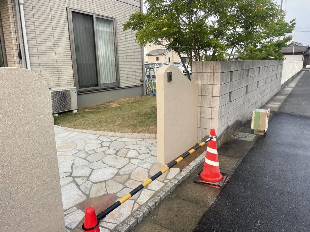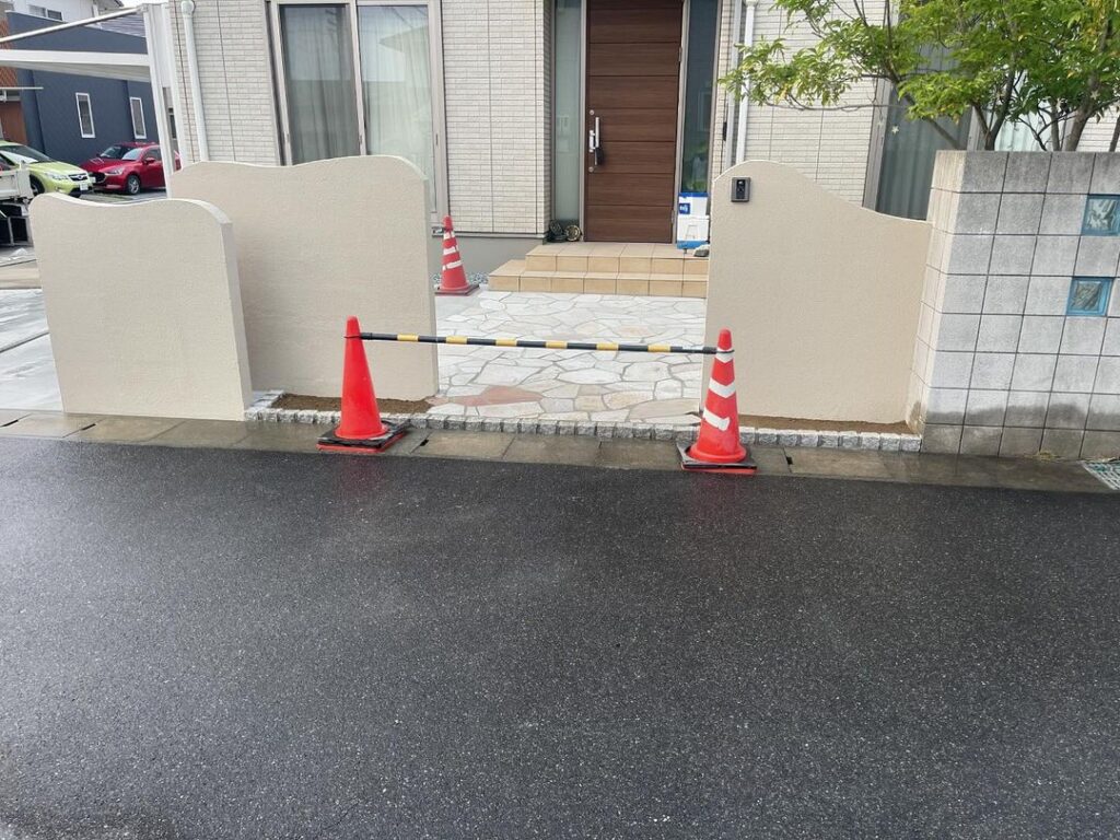 クローズからオープン外構 解体、ウェーブ門柱、乱張り、ピンコロ、土間コンクリート 解体からなので手間と時間はかかりましたが、お客様大変満足してました! 途中乱張り、ピンコロの色のバリエーションも施主様が悩まれてて、僕達が考え外壁の色お庭柄、サッシの色から白ポイ色を提案しました! 完成すると僕達に頼んでよかったの一言を貰え、やり甲斐がありました! これからも頑張りますのでよろしくお願いいたします🙏